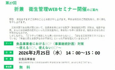 - 第26回折兼 衛生管理WEBセミナー開催のお知らせ